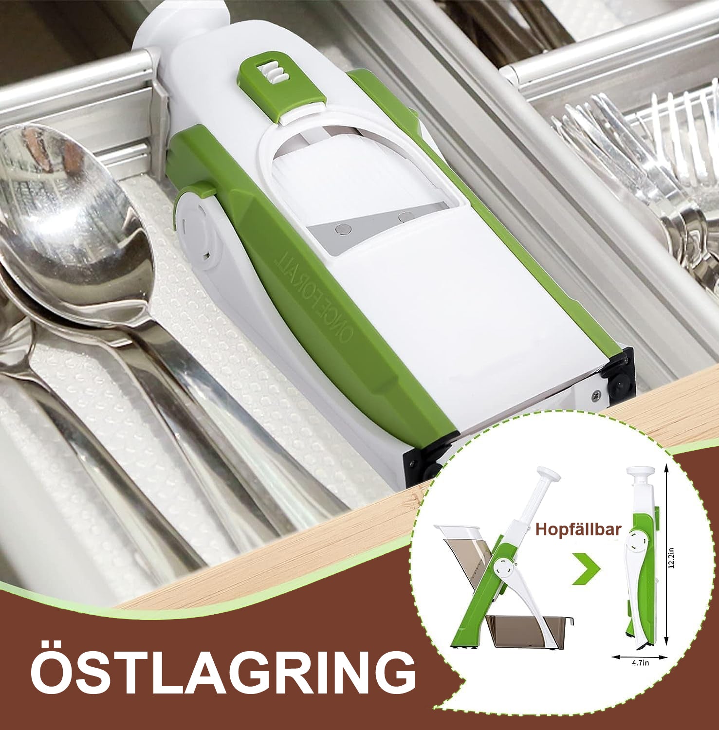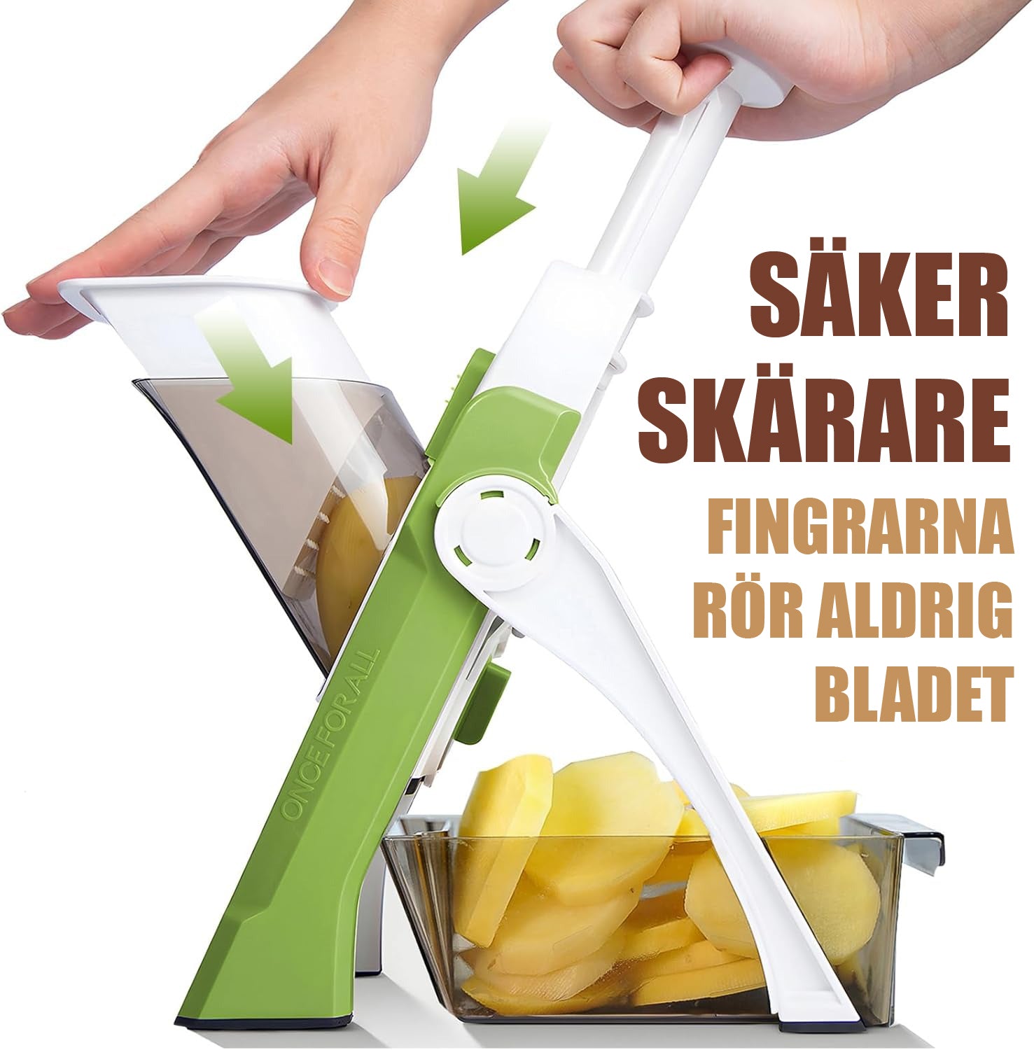 "Den här skäraren är banbrytande! Den är så snabb och enkel att använda. Jag älskar hur jämna skivorna blir, och de olika bladen gör matlagningen till en barnlek. Definitivt värt det."