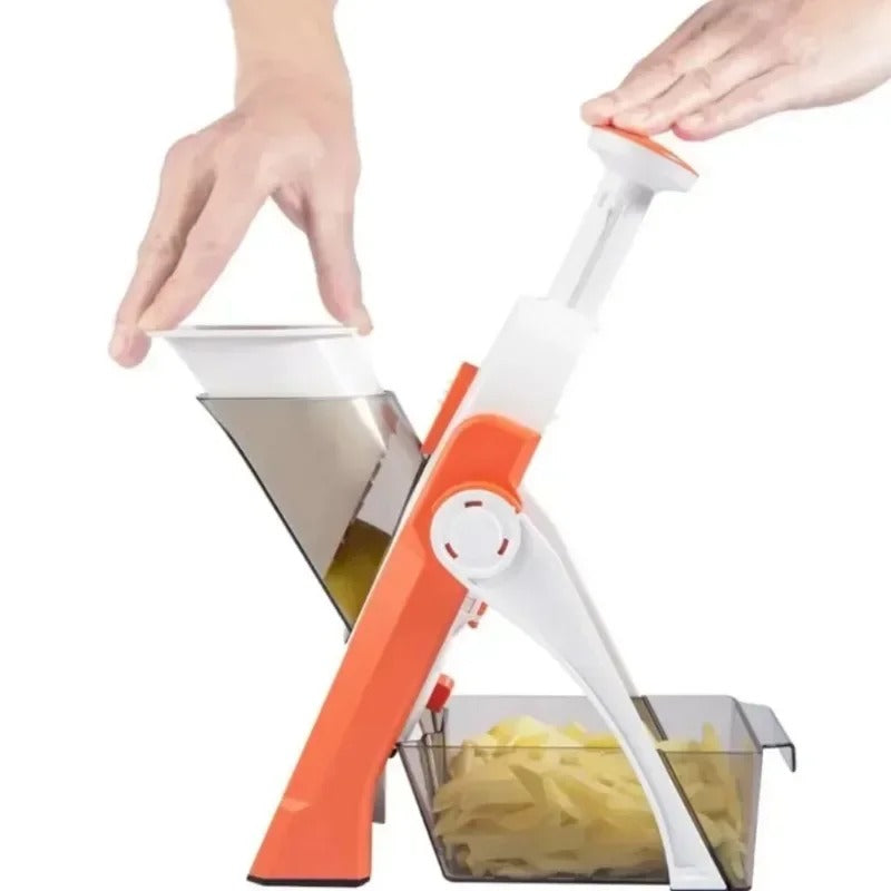 Slajz är ett oumbärligt köksverktyg för att enkelt tillaga grönsaker med precision. Den är utformad för mångsidighet och låter dig skära potatis och andra grönsaker i jämna strimlor, juliennebitar eller till och med tärningar, vilket gör matlagningen snabbare och enklare. De justerbara tjockleksinställningarna låter dig anpassa dina skivor till perfektion, medan säkerhetsskyddet säkerställer att dina fingrar är skyddade under användning. Perfekt för hemmakockar som vill förbättra sina kulinariska färdigheter, denna skivare är banbrytande för sallader, wokrätter och mer.